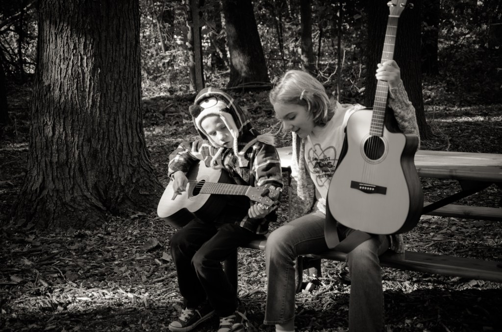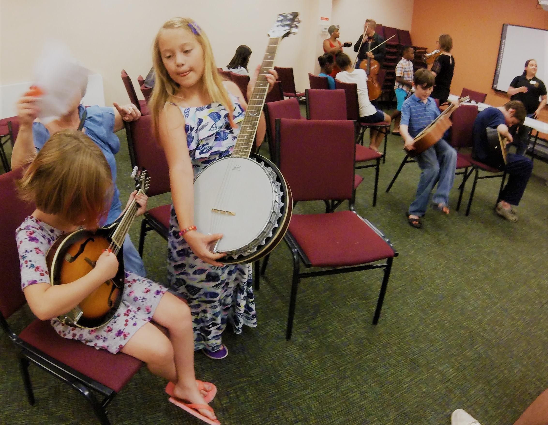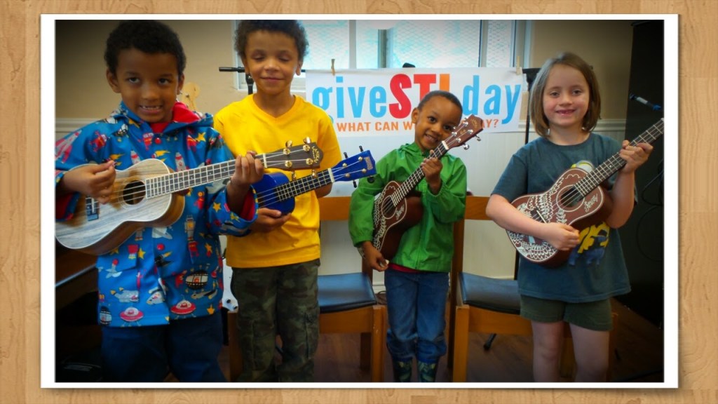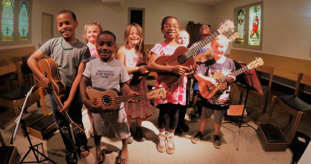 Ukuleles are a great way for the very young (5 and up) to get started. The size of the instruments make it easy for kids to manage. They can learn to read music charts, chords and chord frames, strumming patterns, and beginning note reading. They also develop their voices and begin to sing!